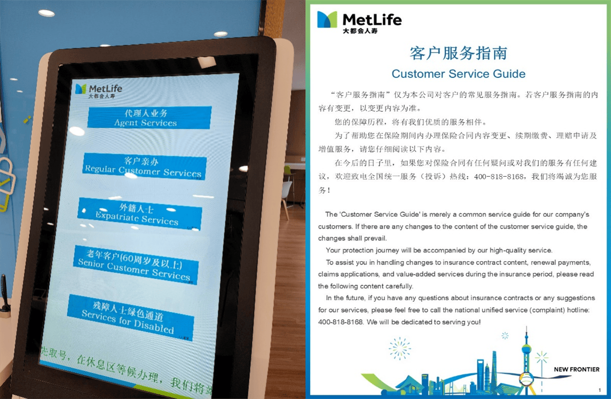 随着我国高水平对外开放持续推进,在华工作、学习、生活的外籍人士规模稳步增长,其对适配的金融保险服务需求日益凸显。大都会人寿立足“以客户为中心”的服务理念,持续完善服务流程,让外籍人士享受保险服务不会遇到语言沟通“肠梗阻”。据悉,大都会人寿柜面专门设置中英文显示的叫号机,并提供外籍人士专属服务通道,重点城市柜面配备中英双语服务专员,确保顺畅沟通。柜面还将摆放中英文版《客户服务指南》,帮助外籍人士了解保险合同变更、续期交费、理赔申请及增值服务等服务内容。同时,大都会人寿全国统一服务(投诉)热线设置呼入英文留言语音导航,并安排英文专员回电,让外籍人士享受到便捷贴心的服务体验。