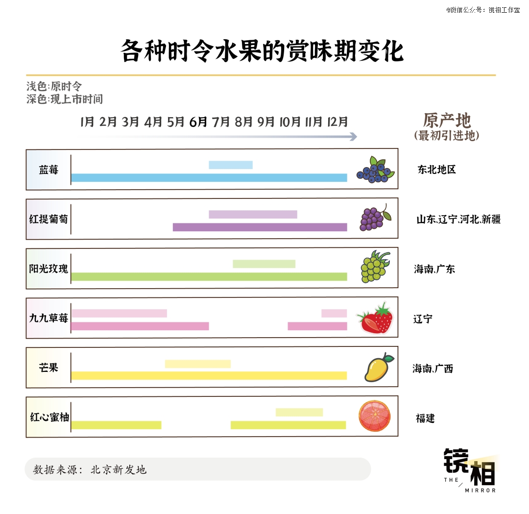 如今市场上流行的枇杷、山楂、龙眼、杨梅品种等皆是中国原产,可不得不承认的是,如今市场上份额更大、讨论度更高的苹果、葡萄、草莓、梨、柑橘等水果的有名品种,多源自外国引进。