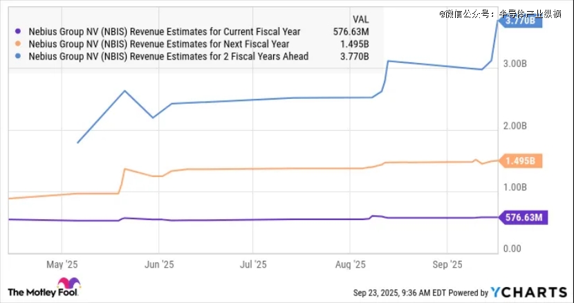 Nebius 的股价在 2025 年迄今已上涨 309%,2025 年上半年的收入为 1.56 亿美元,上半年的收入同比增长545%。分析师预计,Nebius 年底的收入将增长390%,达到 5.76 亿美元。