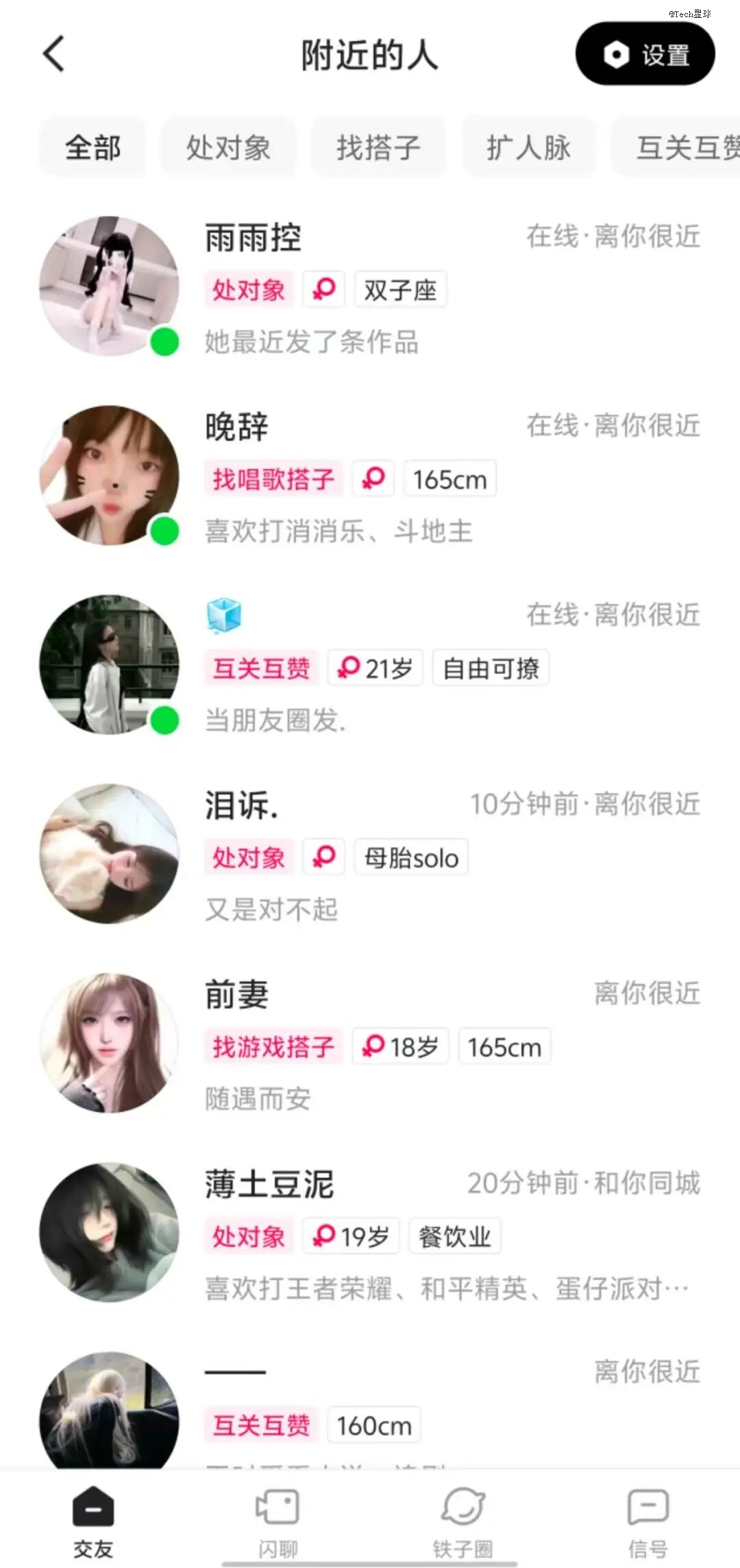 快手则是在加码同城社交,打造了“附近的人”板块,可以与陌生人聊天, 并在此基础上增加了闪聊、铁子圈等社交功能,强化社交氛围感。