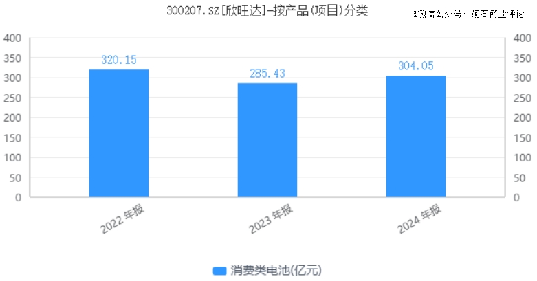 2024年,在“国补”政策的推动下,中国消费电子产品出货量出现回升,全球智能手机、平板电脑等消费电子产品迎来复苏式增长。2024年,欣旺达消费类电池实现销售收入304.05亿元,较上年同期增长近20亿元,但仍低于2022年同期水平。考虑到其在全球手机电池市场的份额已经超过30%,欣旺达消费类电池未来的成长空间已经非常有限。