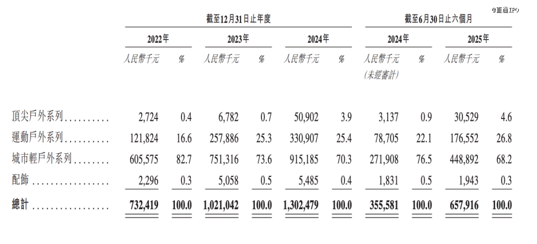 在三大产品系列中,城市轻户外系列表现尤为亮眼,成为了公司营收的核心支柱。该系列精准定位追求日常冬季服饰*舒适度与精致风格的都市通勤客群,凭借突出的产品吸引力与高性价比优势,成功赢得了广大消费者的关注。从具体数据来看,城市轻系列截至2025年6月30日包含387个 SKU。于往绩记录期间,坦博尔共售出900万件城市轻系列服饰。