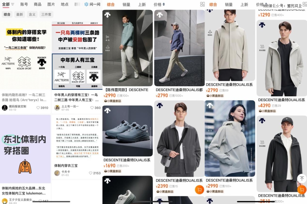 在传播渠道上,小红书上的“体制内穿搭指南”常常推荐它的夹克与Polo衫,抖音上的测评视频也把迪桑特与始祖鸟、可隆放在一起对比,强调它在价格、设计和场合适配性上的优势。这种由用户推动的讨论,让迪桑特逐渐被贴上了“体制内穿搭”的标签。