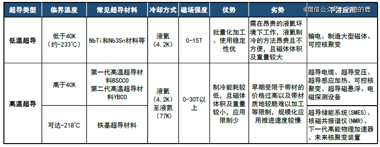 超导材料分低温、高温,看临界转变温度(Tc)来定,具体的区分如下所示: