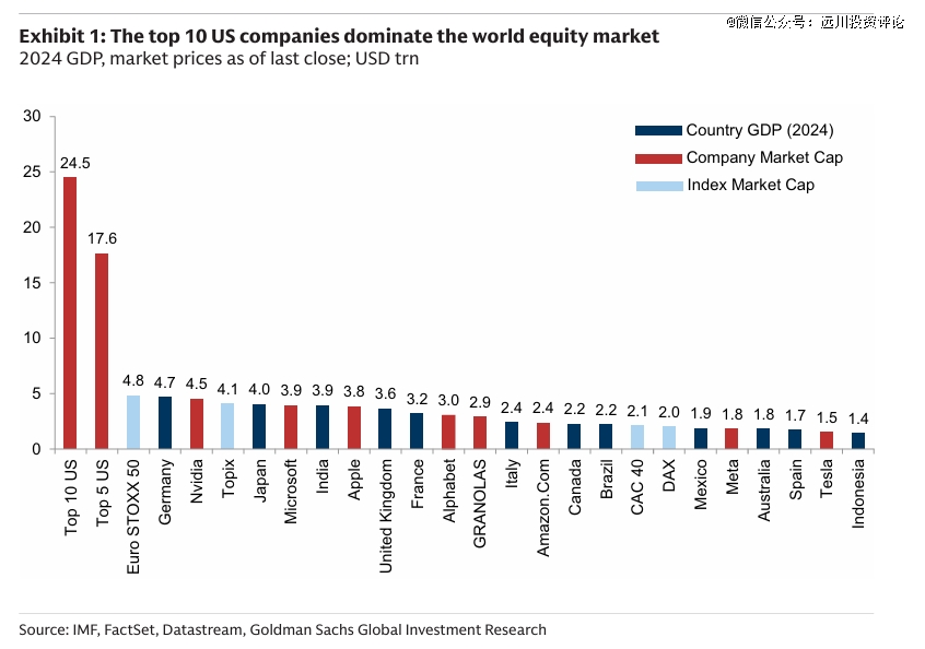 根据高盛研报数据显示,美国*的5家科技公司现在的总价值超过了欧洲斯托克50指数、英国、印度、日本和加拿大市场的总和,其价值约占全球公开股票市场总值的16%。