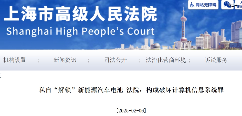 2024年,上海两位修车师傅,因为“解锁”了两块被锁定的新能源车电池包,被告上法庭,最后被判处“破坏计算机信息系统罪”。这一下搞得,新能源汽修工成了个“高危职业”。