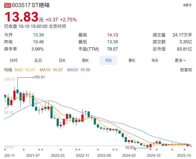 对了,上个月月底,绝味还戴帽了,现在叫 ST 绝味。
