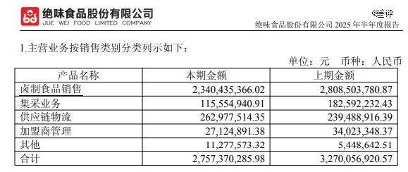 2025 年上半年的财报中,绝味实现营业收入 28.20 亿元,同比下降 15.57%,归母净利润为 1.75 亿元,同比下降 40.71%,狂跌了四成。