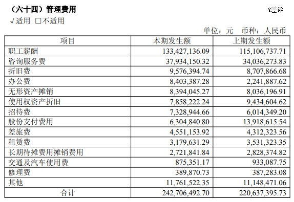 而且啊,这销售费用看上去是变低了,从上期的 2.98 亿减少到了 2.82 亿,可费用率却变高了,从上期的 8.9% 涨至 10%。