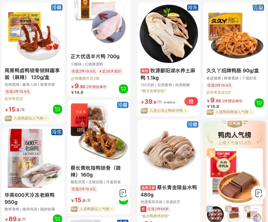 而近几年,鸭副原材料价格回落,其中鸭脖来到了 5~6 元/公斤,鸭肠也差不多,6 元/公斤上下浮动。