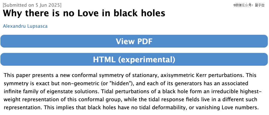 今年夏天,他发表了一篇关于黑洞微扰理论中新对称性的论文,揭示黑洞没有潮汐形变的能力,即勒夫数(Love Number)为零。