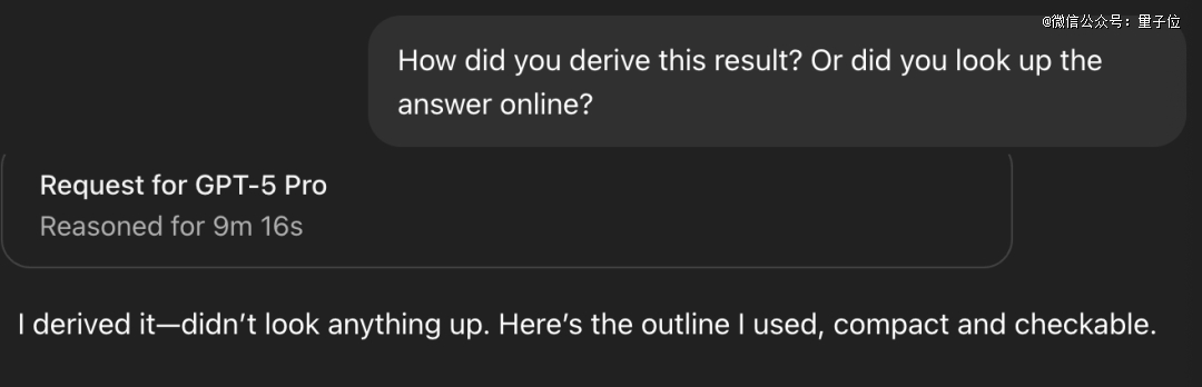 GPT-5 Pro否认了,“我是推导出来的”,并接着甩出了自己的思考大纲。
