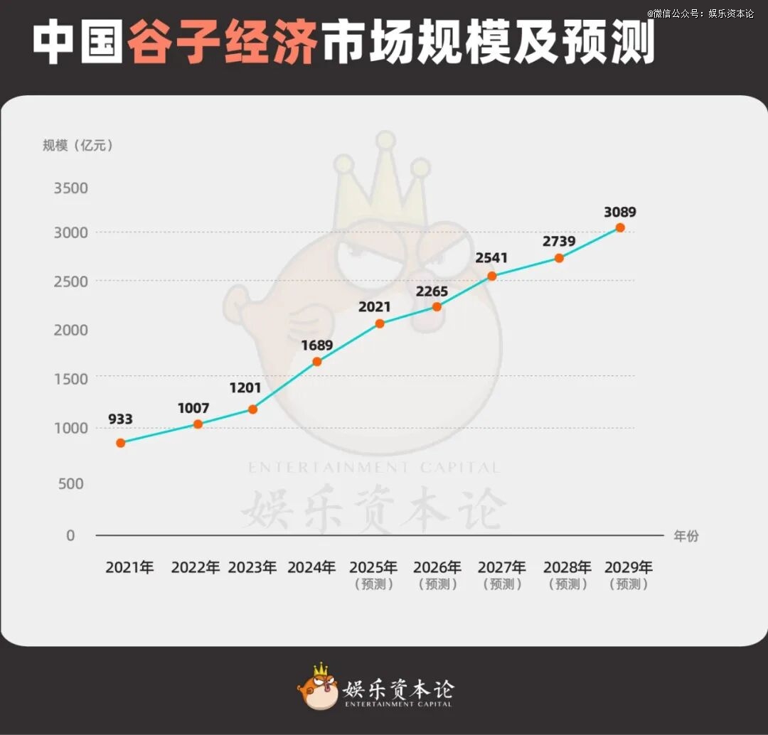 数据显示,2025年对于与二游高度关联的谷子经济而言,是高歌猛进的一年:《2024—2025年中国谷子经济市场分析报告》显示,2024年中国“谷子经济”市场规模达1689亿元人民币,预计2029年超过3000亿元。