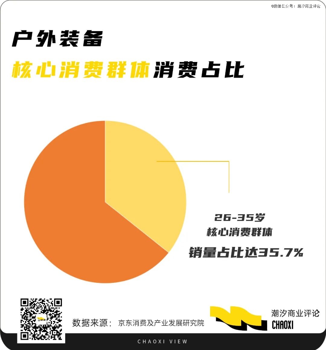 据京东消费及产业发展研究院数据显示,26岁至35岁人群已成为户外装备的核心消费群体,销量占比达35.7%,8090后消费者合计贡献了超六成的户外装备销量。