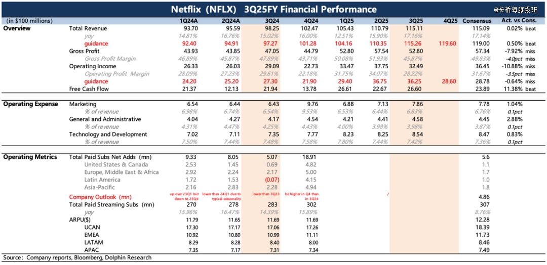 奈飞(NFLX.O)美东时间10月21日盘后发布了2025年三季度财报。股价大跌已经反映了资金态度,表面是对盈利miss的惩罚,实则是复刻上季度剧本——短期高估值下,未超预期就是不及预期。