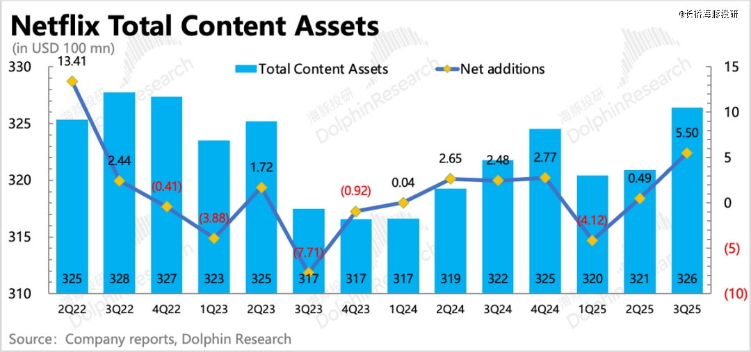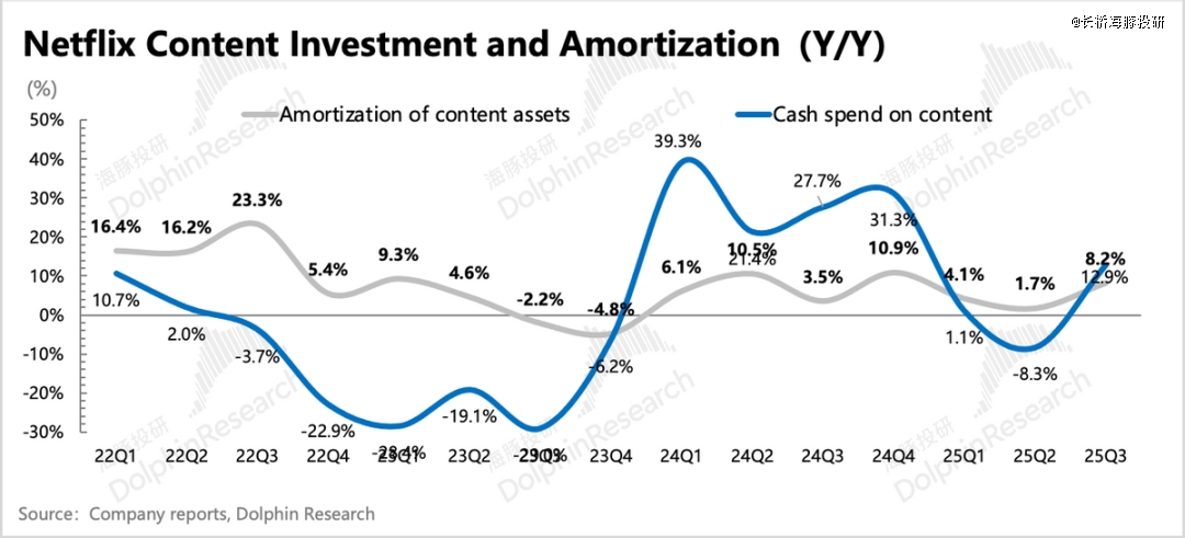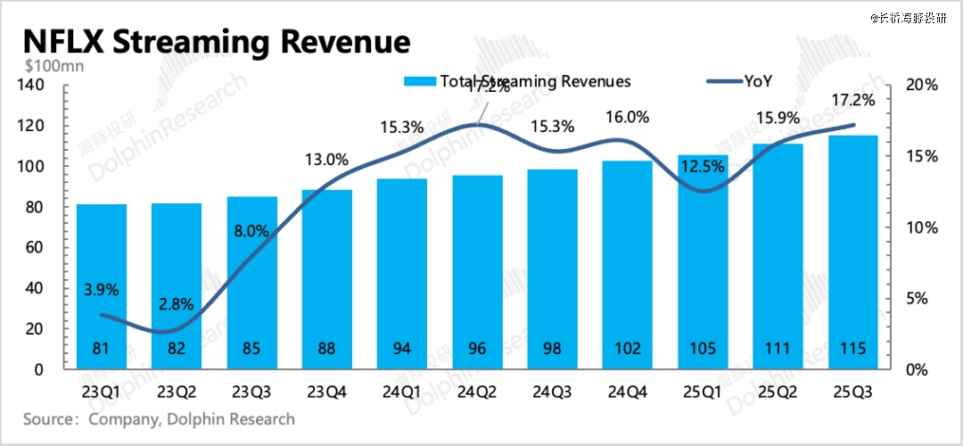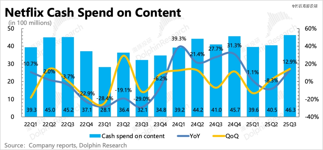 期间有诸多扰动(比如100%海外影片制作关税、马斯克号召取消订阅奈飞等等),但股价承压的核心原因,还是海豚君在二季报点评中提及的——对内容周期走完短期峰值之后的增长担忧。