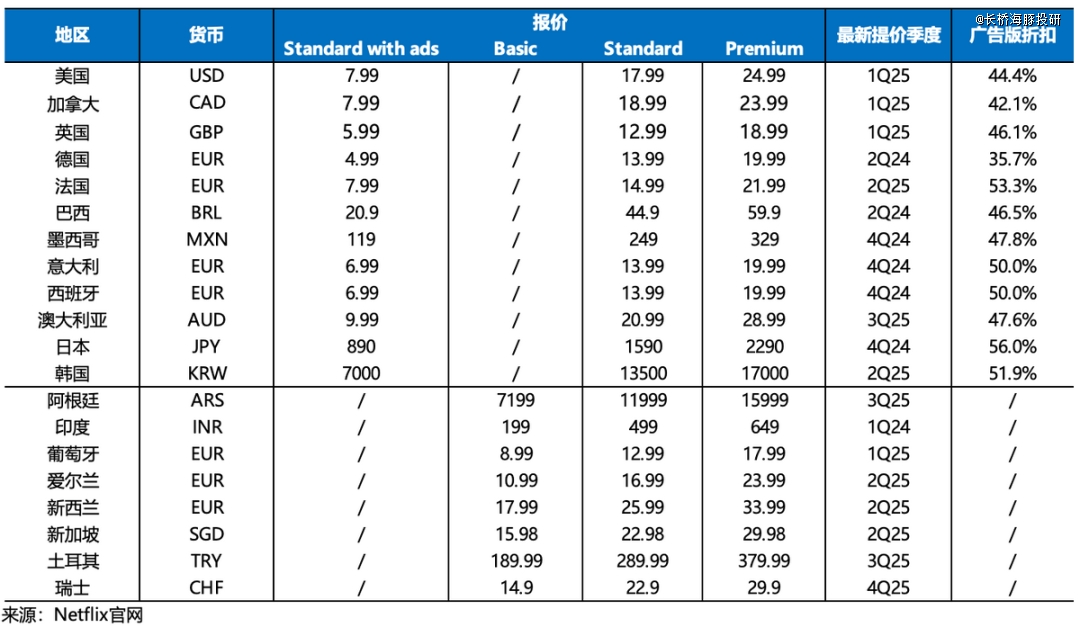 然而结果却很一般,似乎有点割裂。结合10月初马斯克发起的“取消订阅奈飞”倡议,海豚君猜测,可能是核心地区年初以来的涨价让部分用户对标准、高级套餐的偿付压力逐渐显现,*取消低价无广告的Base套餐使得用户被迫转向影响观看体验的广告套餐。