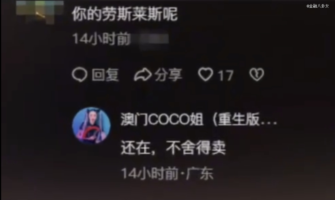 而在另一边,澳门Coco姐仍坚持拍视频,哭诉“身体出问题”“不能直播”。然而那辆粉色劳斯莱斯依旧稳稳停在镜头外的车库里,让人不禁怀疑这场“破产危机”是真是假。