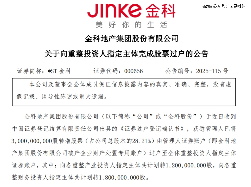 ▲金科此前公告完成重整股票过户。
