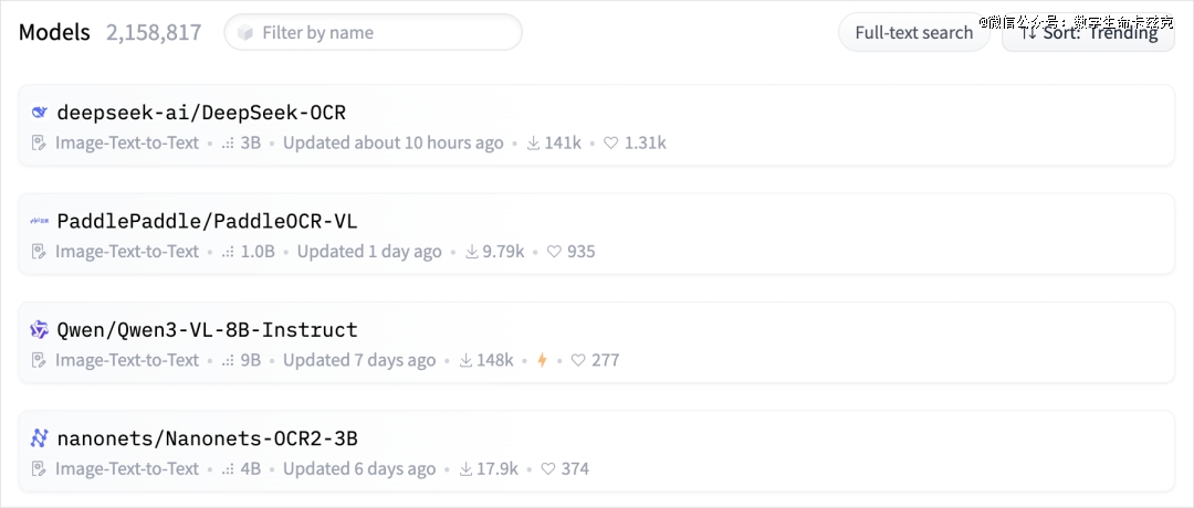 整个Hugging Face的趋势版里,前4有3个OCR,甚至Qwen3-VL-8B也能干OCR的活,说一句全员OCR真的不过分。
