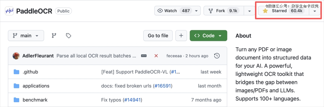 首先提一下,PaddleOCR这个项目本身,不是啥新东西,这是百度一直都在做的项目,很多年了,最早期甚至可以追溯到2020年,也是一直是开源的姿态。