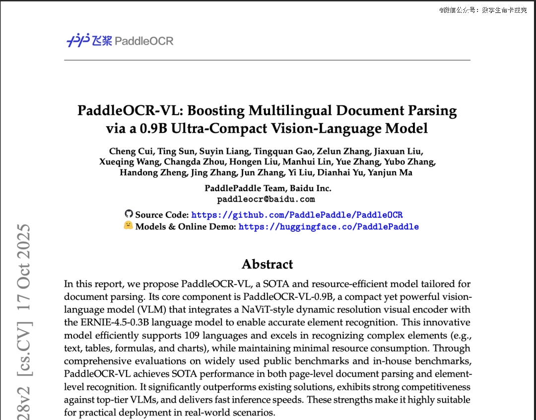 目前PaddleOCR-VL已经开源,网址在此: