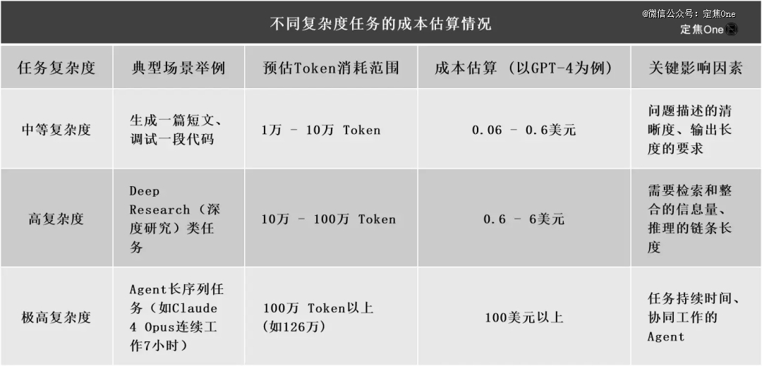 一次推理任务究竟有多烧钱?覃相将完成不同复杂度任务时所需的成本进行如下对比: