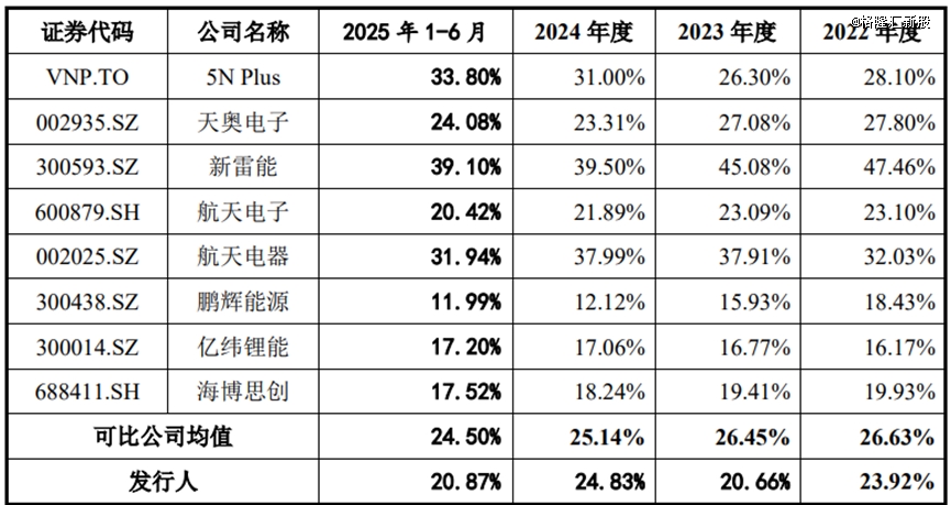 公司与同行业可比上市公司主营业务毛利率对比情况,图片来源于招股书