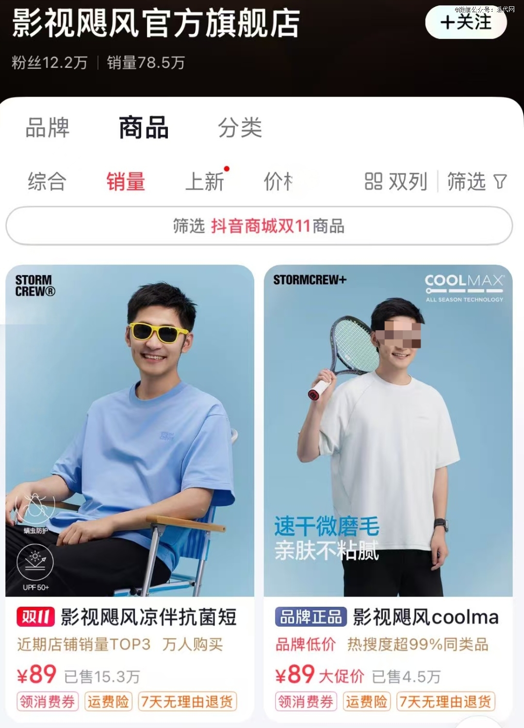 影视飓风,原本是以影视教学、数码评测闻名B站的内容团队,如今在电商领域掀起了不小的波澜。派代查询到,其抖音店铺近30天销售额达到1000-2500万元,而贡献最 大的单品,是一款售价89元的基础款T恤,累计销量超20万件。