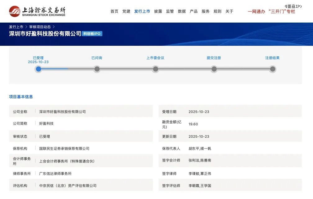10月23日,无人机动力系统制造商深圳市好盈科技股份有限公司(下称:好盈科技)科创板IPO获上交所受理,保荐机构为国联民生证券。