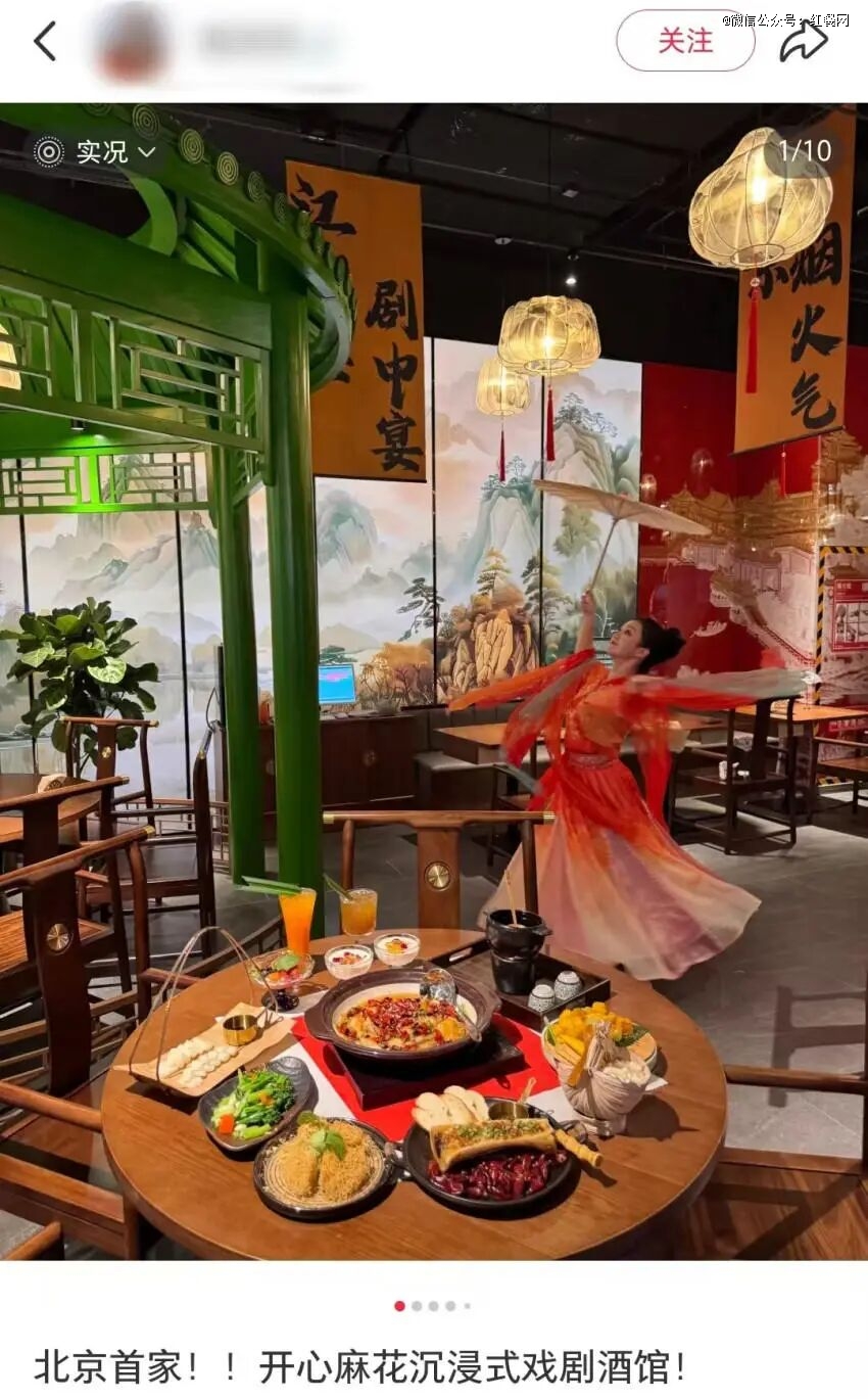 比如,今年7月,全国 首 家开心麻花主题戏剧餐厅“开心麻花·江湖饭局”在北京开业。在消费者用餐时,舞台同步上演戏剧《偷心晚宴》古装升级版,消费者还可参与投壶、掷骰子等互动。