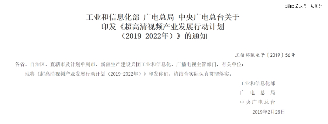 2019年,国家发布《超高清视频产业发展行动计划(2019—2022年)》,提出要建立自主的超高清标准体系。以工信部、国家广电总局为牵头单位,央视、华为、海信、TCL、中科院声学所等机构陆续参与研发。
