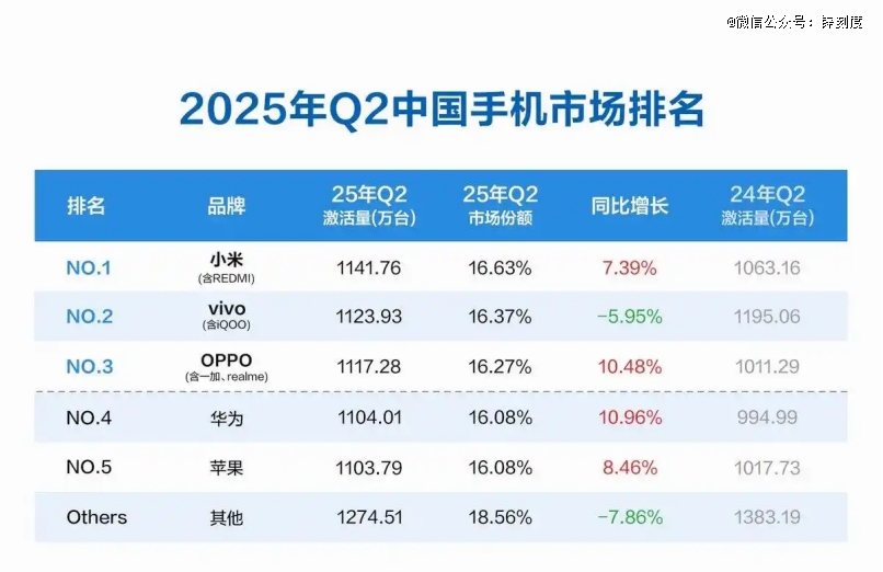 公开数据显示,红米K80 Pro单品激活量超100万台,而一加13为70万台以上;红米K80、iQOO Neo 10和一加Ace 5的销量比例系数为2.92、1.14和1。