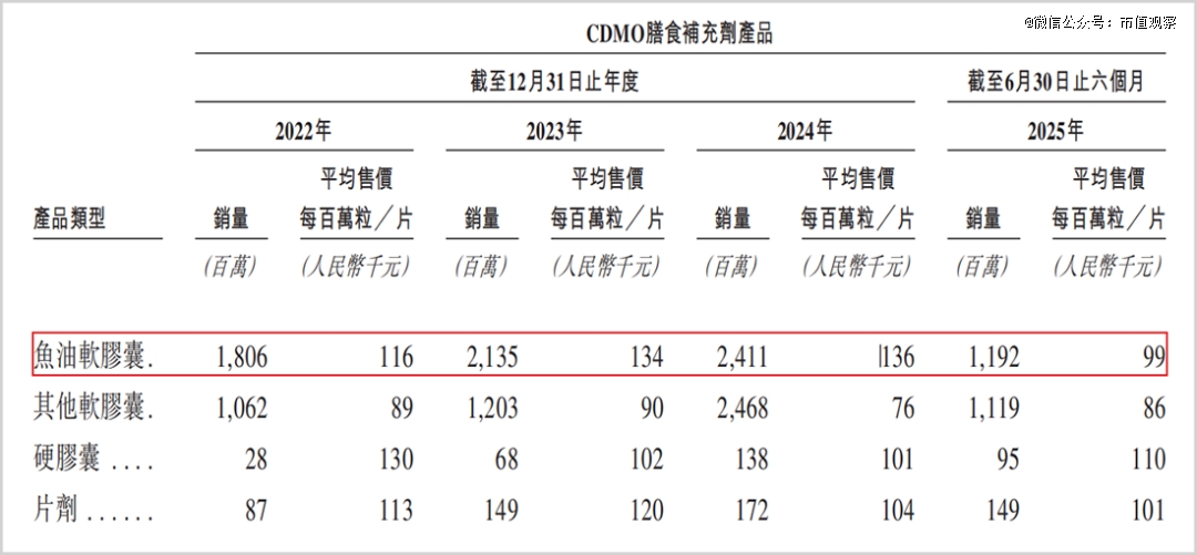 在上游原材料成本压力山大之余,禹王生物营养CDMO膳食补充剂价格也出现了下降,其中主力产品鱼油软胶囊的平均售价由2024年上半年的13.6万元/百万粒下降到了2025年上半年的9.9万元/百万粒,创出了自2022年以来的新低。