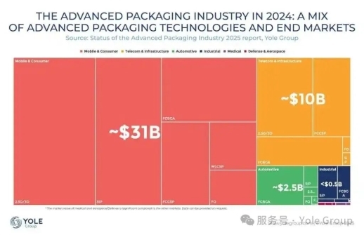 Yole年度报告《Status of the Advanced Packaging Industry 2025》中强调,从 2024 年到 2025 年,先进封装市场在多个应用领域进一步巩固了其战略地位。曾经仅应用于特定高端产品,如今已成为消费电子大规模应用的支柱技术,同时也为 AR/VR、边缘 AI、航空航天及国防等新兴市场提供关键支撑。