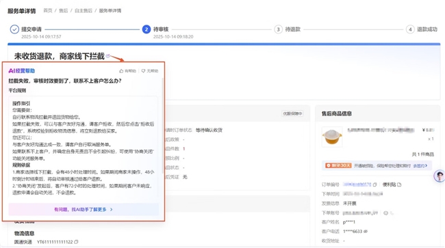 针对商家在经营过程中的高频痛点场景,京东深度整合AI能力,推出贯穿经营链路的“AI经营帮助”。该功能嵌入业务流程提供即时指引,融合智能搜索与京灵客服等核心功能,在关键操作环节通过AI帮助提示,有效帮助商家快速解决难题,服务问题前置解决率提升超30%。