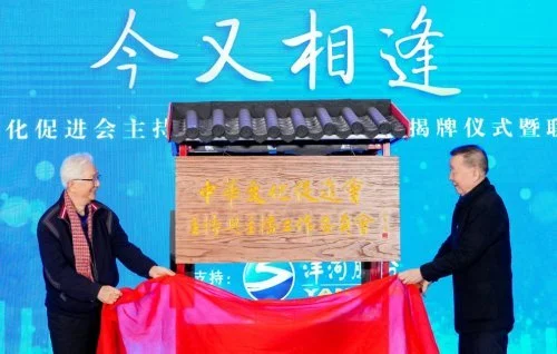 中华文化促进会创办人、名誉主席王石,中央广播电视总台著名主持人陈铎,在全场倒计时声中牵起红绸,为 “中华文化促进会主持与主播工作委员会” 揭牌,标志着新机构正式启航。