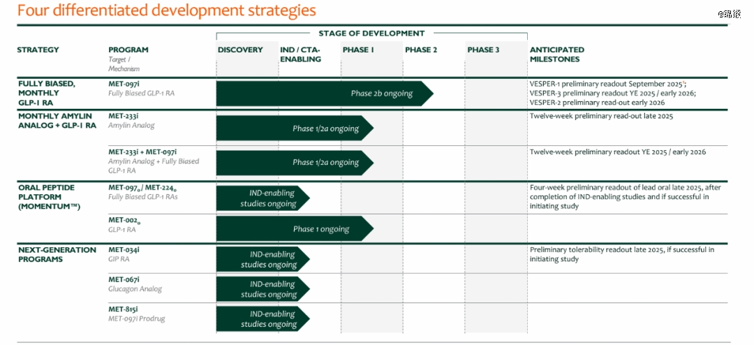 既然双方争夺的焦点在Metsera身上,那么我们就全面剖析一下Metsera的管线布局。