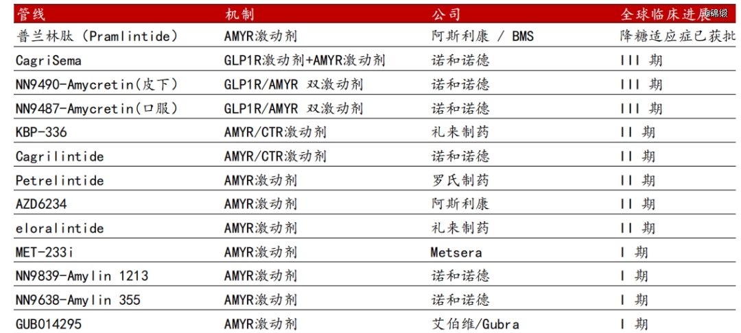 图:全球Amylin管线一览,来源:麦高证券