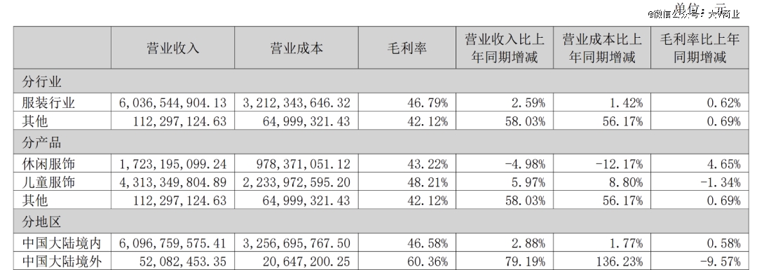 2025半年报财务数据显示,儿童服饰的毛利率为48.21%比休闲服饰的43.22%略高,但由于儿童服饰营收远高于休闲服饰,利润显然也更高。
