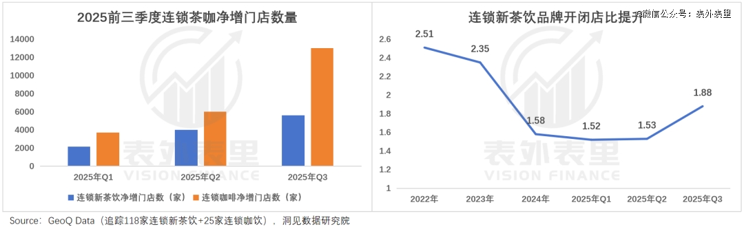 跟王洁境遇相似的商家,不在少数。据GeoQ Data数据,今年国内连锁茶咖品牌净增门店数量快速攀升,仅三季度便开出新店2.6万家,同比去年几乎翻番。