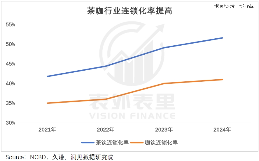 数据显示,茶咖连锁化率持续提升,2024年茶饮连锁化率已达到51%,但行业整体门店数却在减少。