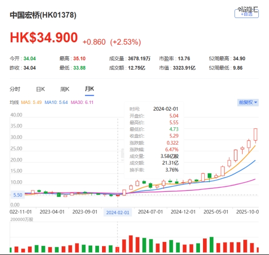 其中,作为铝产业链代表性企业,中国宏桥股价自2024年初至今涨幅已超6倍。