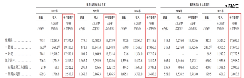 氧化铝的收入贡献也受到平均市价的波动影响。报告期内,CRU中国氧化铝价格分别为2936元/每吨、2906元/每吨、4030元/每吨、3517元/每吨。