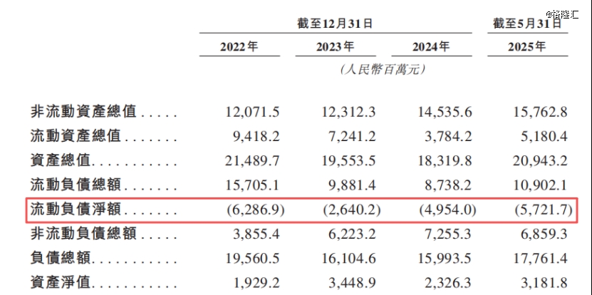 截至2025年9月30日,公司净流动负债为67.75亿元,资产负债率高达84.8%。