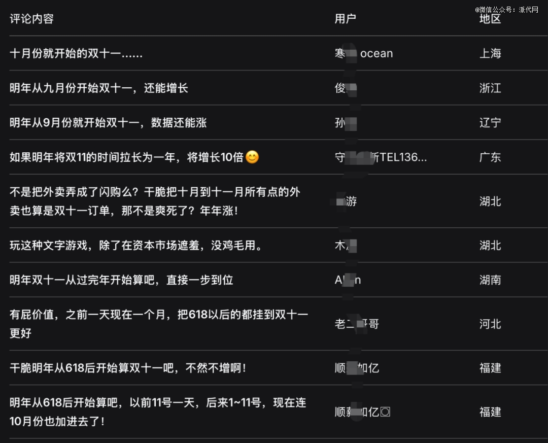 派代将这些讨论整理成文,并非为了否定电商大促的价值,而是希望通过呈现这些来自市场最前线的声音,揭示双11正在面临的危机:当数据的公信力受到质疑,当商家无法从中获益,这场持续了十余年的消费狂欢,究竟该何去何从?