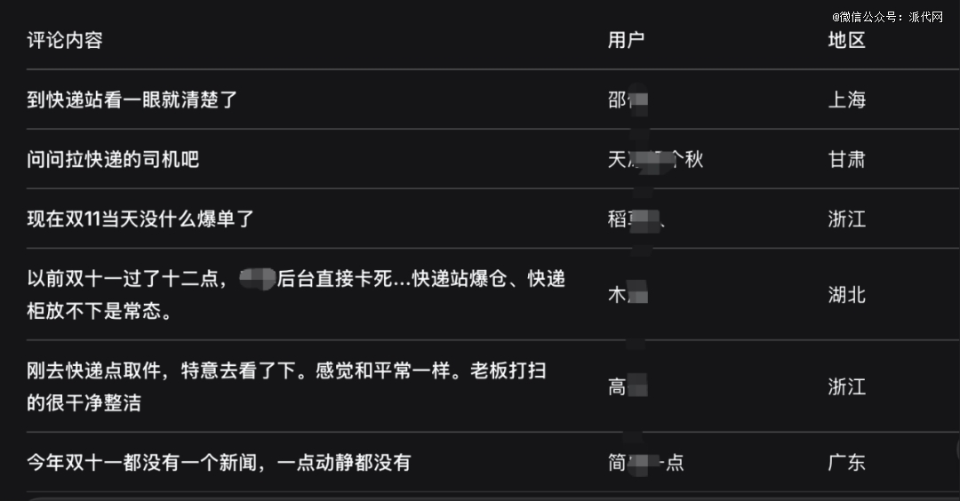 “到快递站看一眼就清楚了”——这条来自上海的评论,成为了最简洁有力的证伪方式。在往年的双11,快递站点“爆仓”、包裹堆积如山的景象是标配,而如今,多位商家的反馈却指向了同一个现象:“现在双11当天没什么爆单了”。一位浙江商家特意观察后证实:“刚去快递点取件,特意去看了下。感觉和平常一样。老板打扫的很干净整洁”。