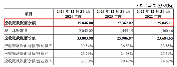 然而,春光集团在应收账款管理方面的问题值得关注。招股书显示,公司应收账款账面余额逐年攀升。2022年-2024年,公司应收账款账面余额分别为2.50亿元、2.74亿元和3.58亿元,占营业收入的比例分别为24.67%、29.43%和33.30%,呈逐年上升的趋势。