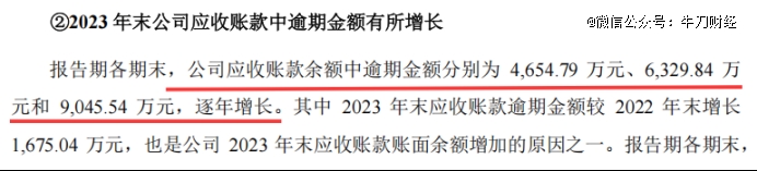 招股书显示,2022年-2024年,公司应收账款余额中的逾期金额分别为4654.79万元、6329.84万元和9045.54万元,逐年增长迹象明显。