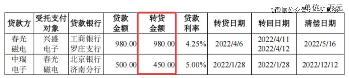 值得关注的是,同年1月,春光磁电还为客户中瑞电子提供了资金过账通道。具体为,中瑞电子将500万元贷款转入春光磁电的账户,然后,春光磁电从中扣除50万元货款后,当天就把剩下的450万元又转回去了。